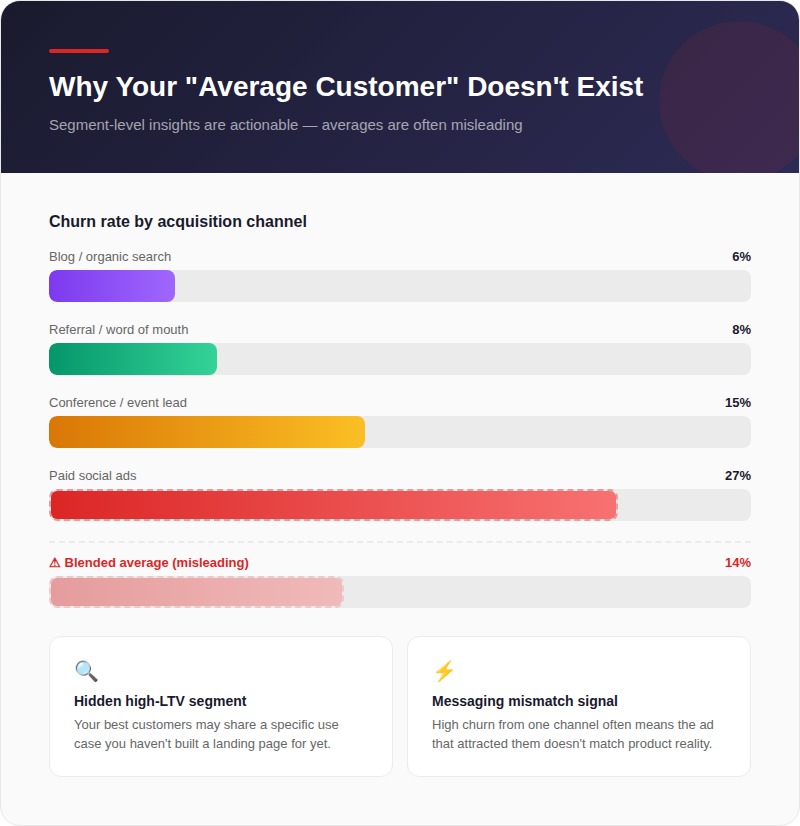 What works for one segment might actively repel another. Insights at the segment level are actionable; insights at the average level are often misleading.