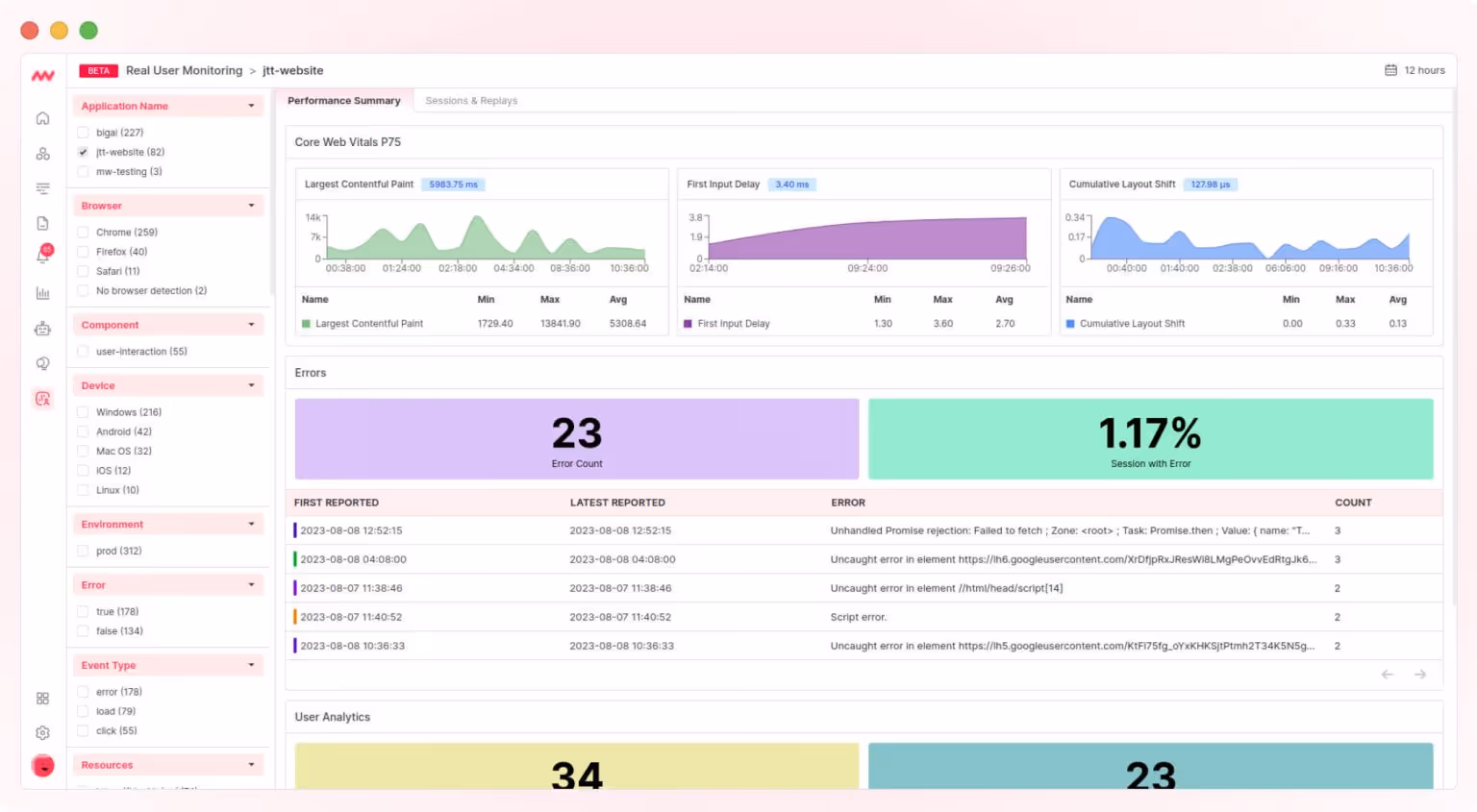 - Session Replays: Enables teams to visualize user interactions, crucial for debugging complex applications.