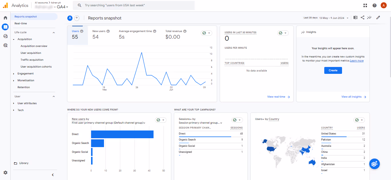 - Standard & custom reports: Analyzes user behavior, traffic sources, and conversions for actionable SaaS insights.